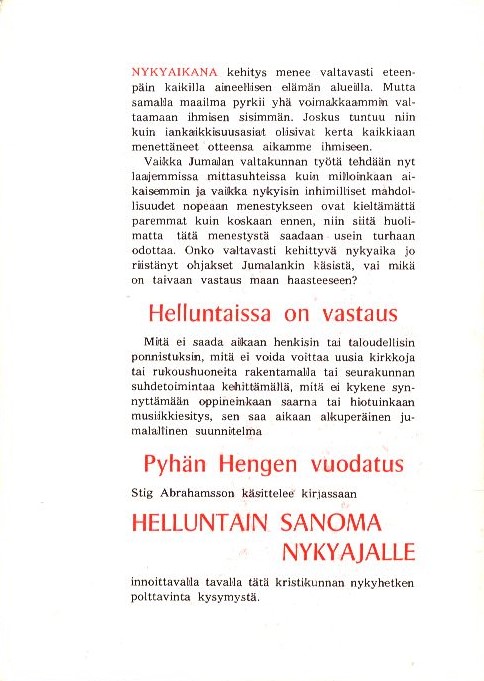 Abrahamsson, Stig 1966: Helluntain sanoma nykyajalle