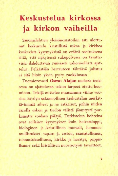 Alaja, Osmo 1957: Keskustelua kirkossa ja kirkon vaiheilla