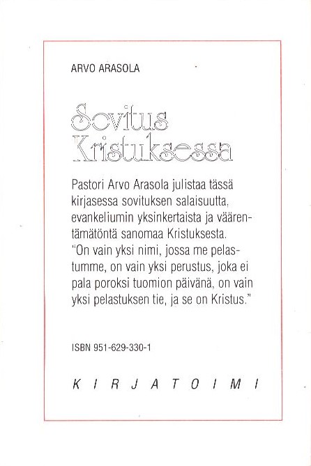 Arasola, Arvo 1990: Sovitus Kristuksessa