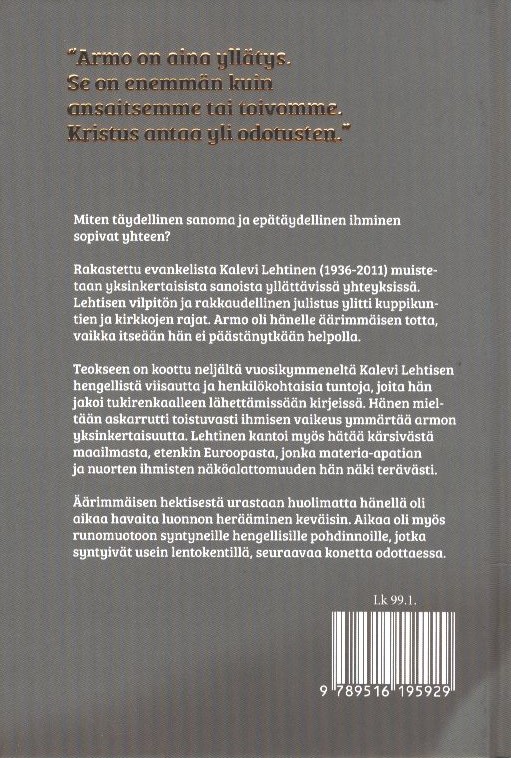 • Nimike: Armo jää: Kalevi Lehtisen sanoja vuosien varrelta