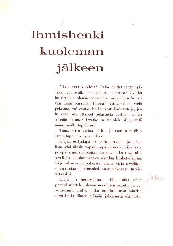 Eriksson, Algot 1963: Ihmishenki kuoleman jälkeen