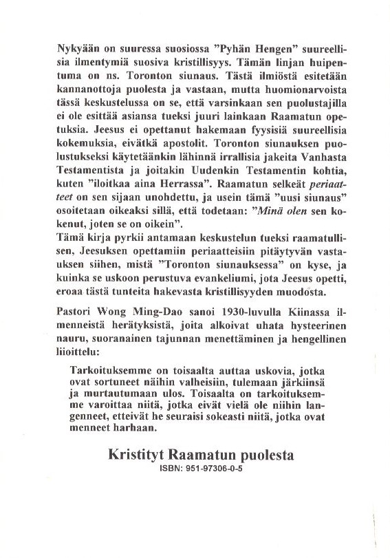 - Julkaistu: Tampere, Kristityt Raamatun puolesta, 1995