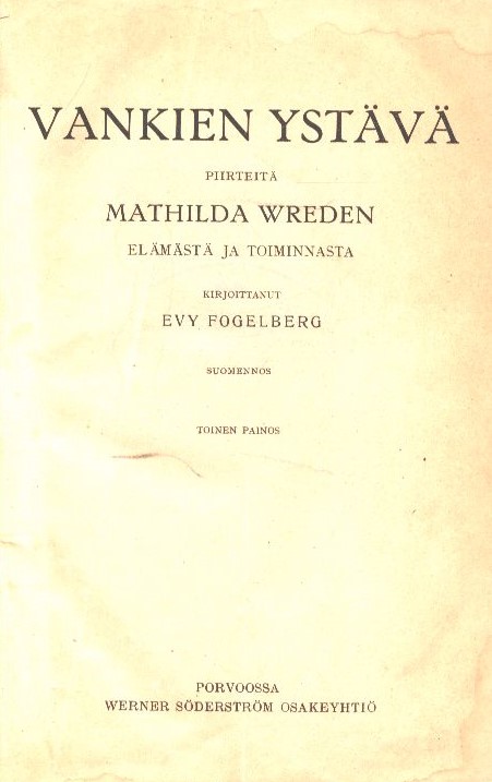 - Nimike: Vankien ystävä: piirteitä Mathilda Wreden elämästä ja toiminnasta