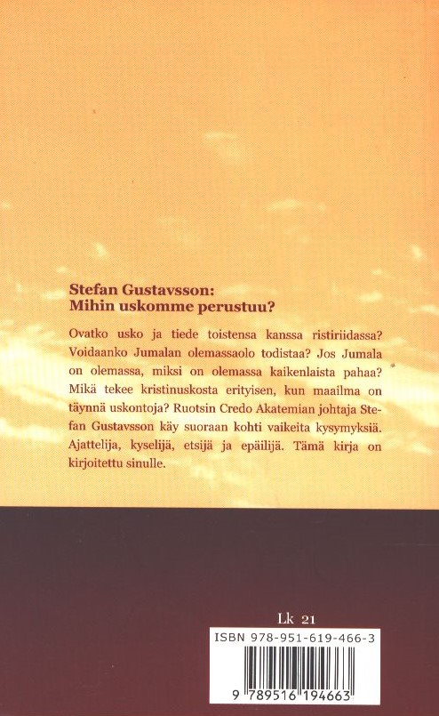 Gustavsson, Stefan 2007: Mihin uskomme perustuu