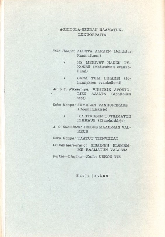 • Julkaistu: Helsinki, Kirkon opintokeskus, s.a.