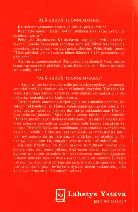 Helin, Unto 1978: Älä siirrä tuonnemmaksi
