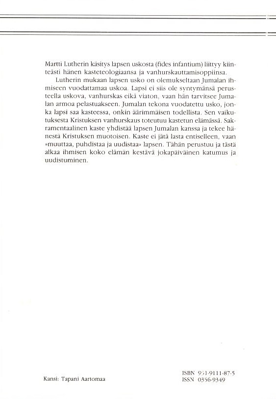 - Nimike: Fides infantium: Martti Lutherin käsitys lapsen uskosta