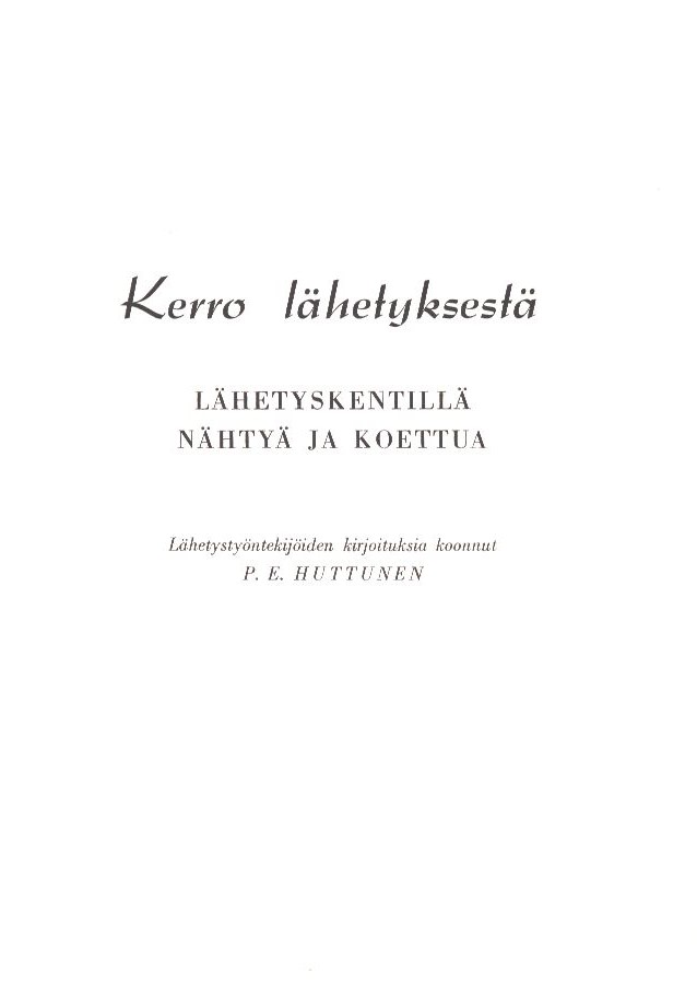 Huttunen, P. E. 1960 (toim.): Kerro lähetyksestä
