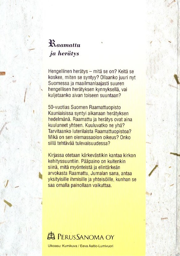 - Nimike: Raamattu ja herätys: mikä on 50-vuotiaan Suomen raamattuopiston sanoma ja paikka tänään?
