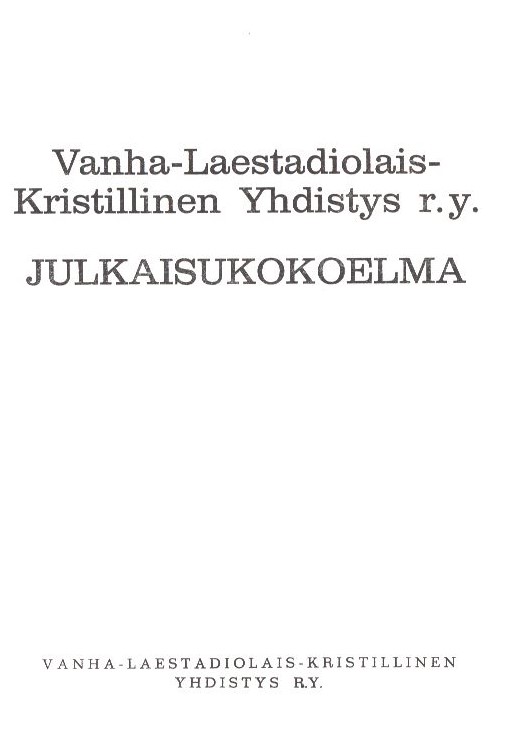 • Julkaistu: Vanha-laestadiolais-kristillinen yhdistys ry, 1972