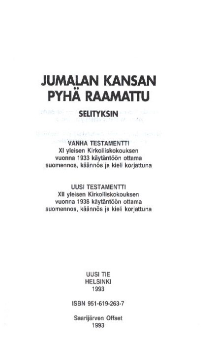 - Nimike: Jumalan kansan pyhä Raamattu