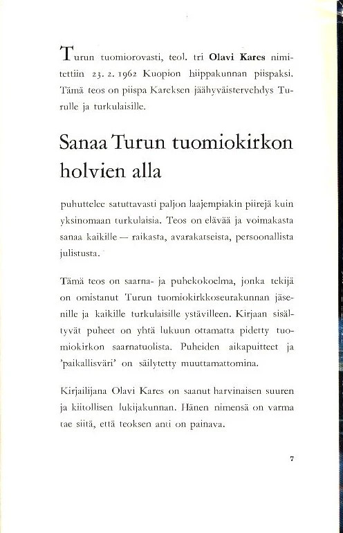 Kares, Olavi 1962: Sanaa Turun tuomiokirkon holvien alla