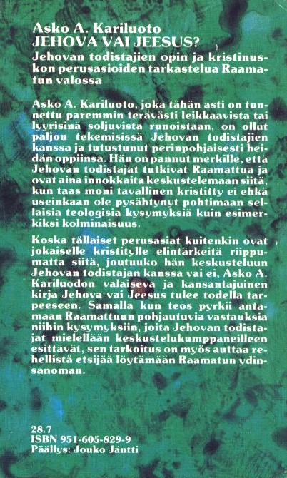 - Nimike: Jehova vai Jeesus? Jehovan todistajien opin ja kristinuskon perusasioiden tarkastelua Raamatun valossa