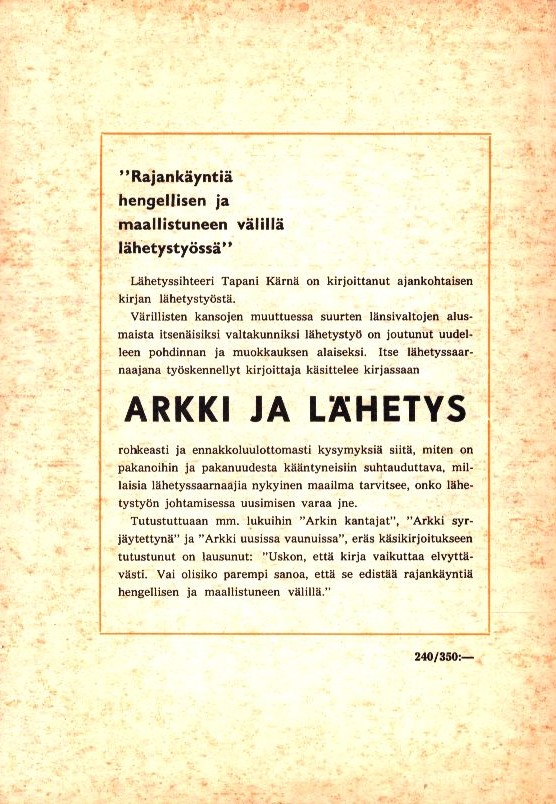 Kärnä, Tapani 1962: Arkki ja lähetys