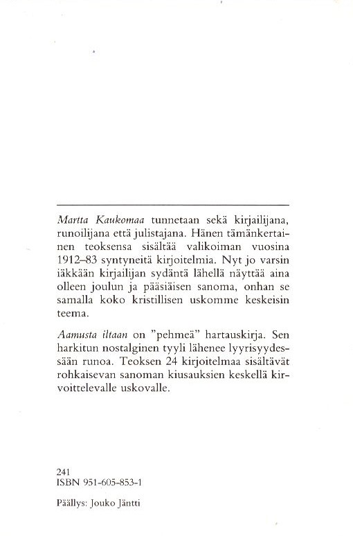 • Nimike: Aamusta iltaan: valikoima vuosina 1912–1983 syntyneistä kirjoitelmista