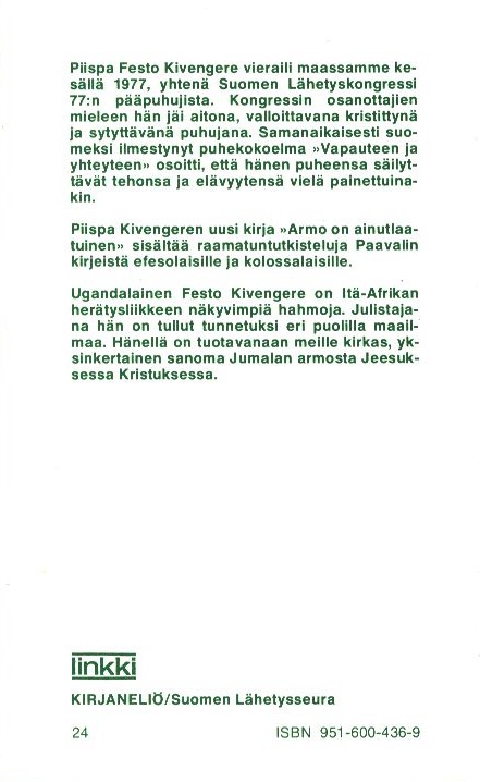 • Nimike: Armo on ainutlaatuinen: Efesolais- ja Kolossalaiskirjeiden tutkisteluja