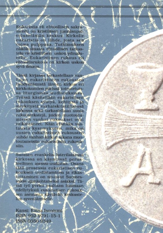 - Nimike: Eukaristinen rukous: vanhakirkollinen aineisto lännen kirkkojen uusissa ehtoollisrukouksissa