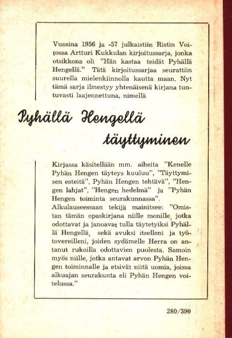 Kukkula, Artturi 1961: Pyhällä Hengellä täyttyminen