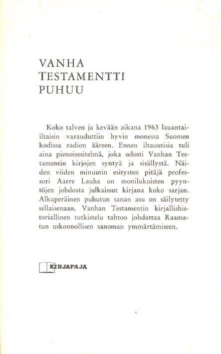 Lauha, Aarre 1963: Vanha testamentti puhuu