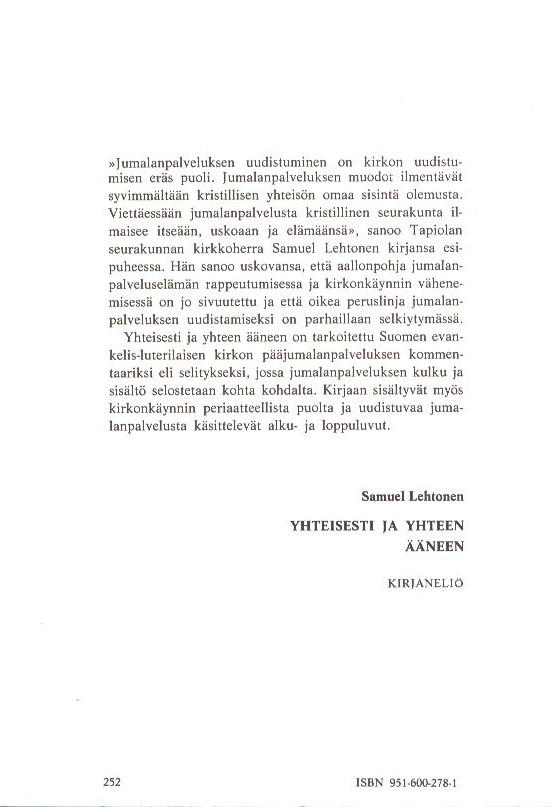 Lehtonen, Samuel 1976: Yhteisesti ja yhteen ääneen