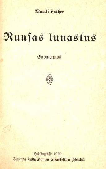 - Julkaistu: Helsinki, Suomen lutherilainen evankeliumiyhdistys, 1929
