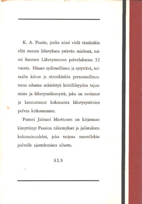 - Nimike: Lähetystulien sytyttäjä: Kustaa Adolf Paasio lähetysmiehenä