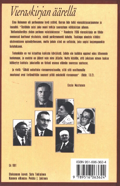 • Nimike: Vieraskirjan äärellä: katkelmia menneiltä ajoilta ja vähän nykyiseltäkin ajalta