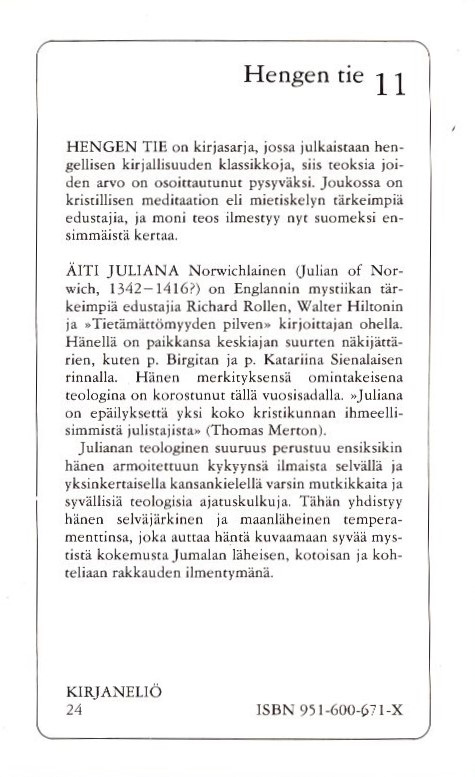 • Julkaistu: Helsinki, Kirjaneliö, 1985