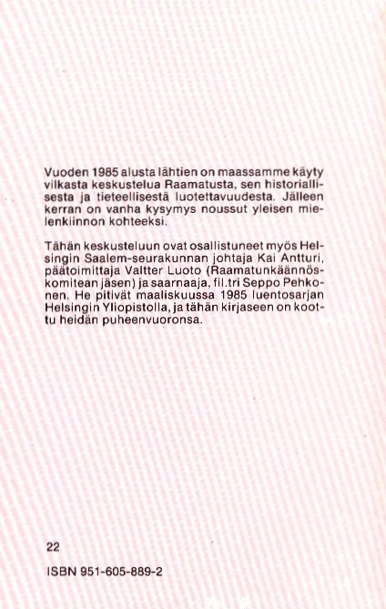 - Nimike: Onko raamattu luotettava? Kannanottoja raamattukeskusteluun