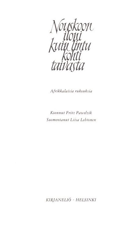 • Nimike: Nouskoon iloni kuin lintu kohti taivasta: afrikkalaisia rukouksia