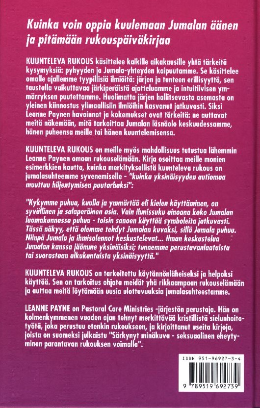 • Nimike: Kuunteleva rukous: kuinka voin oppia kuulemaan Jumalan äänen ja pitämään rukouspäiväkirjaa
