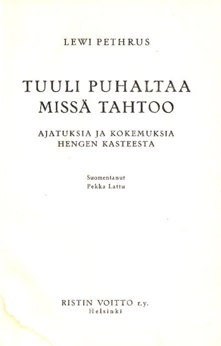 - Nimike: Tuuli puhaltaa missä tahtoo: ajatuksia ja kokemuksia Hengen kasteesta