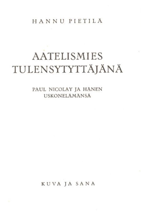 - Nimike: Aatelismies tulensytyttäjänä: Paul Nicolay ja hänen uskonelämänsä