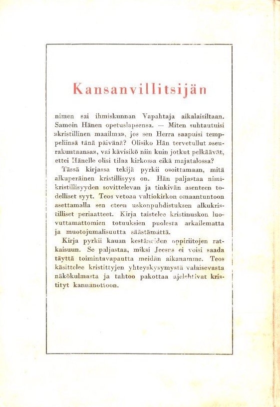 - Julkaistu: Helsinki, Ristin voitto, 1952