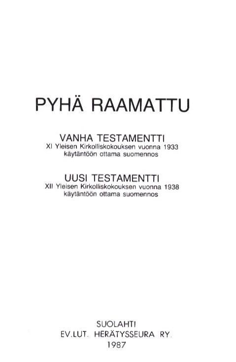 - Nimike: Pyhä Raamattu