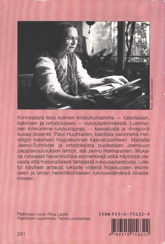 - Nimike: Rukouksen kirja: suomalaisen rukouselämän perinteestä luterilaisessa, katolisessa ja ortodoksisessa kirkossa