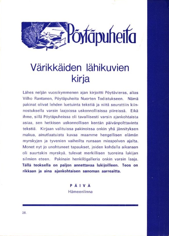 - Nimike: Pöytäpuheita: pöytävieraan pakinoita vuosilta 1928–67