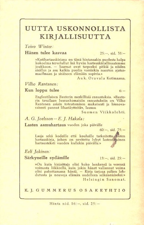 • Julkaistu: Jyväskylä, Gummerus, 1931
