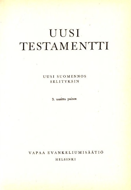 - Nimike: Uusi testamentti: uusi suomennos selityksin