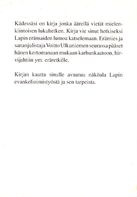 • Nimike: Lapin kairoilta: sananjulistaja, erämies Voitto Ulkuniemi