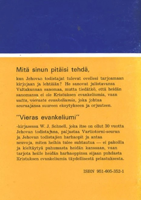 Schnell, W. J. 1972: Vieras evankeliumi (Jehovan todistajat)