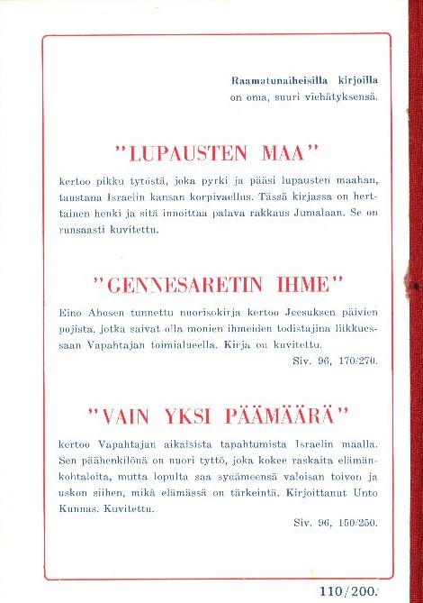 • Julkaistu: [Helsinki], Ristin voitto, 1955