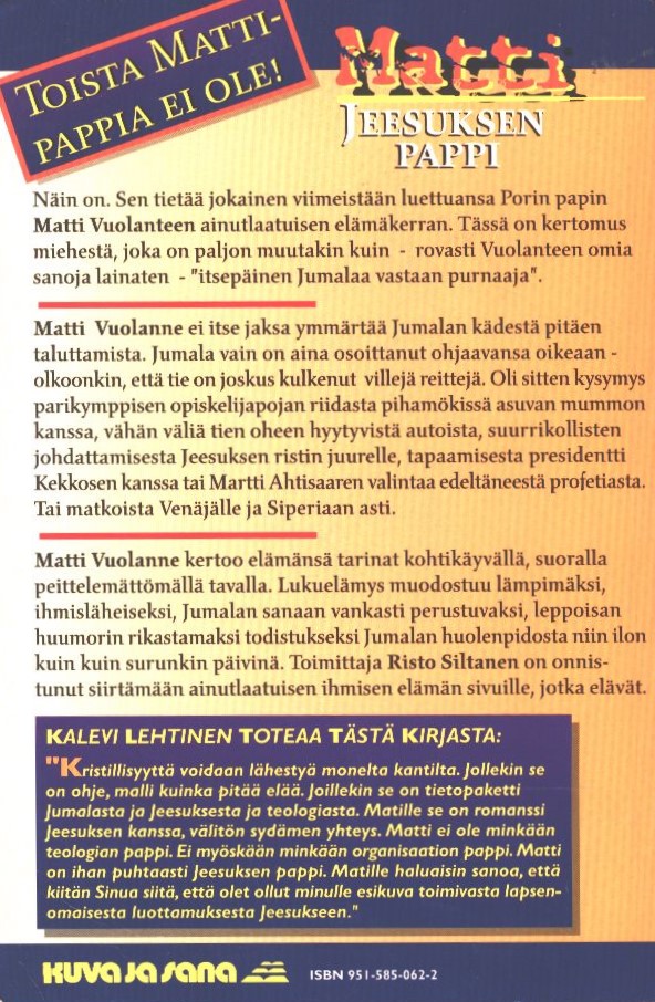 - Julkaistu: Helsinki, Kuva ja sana, 1998