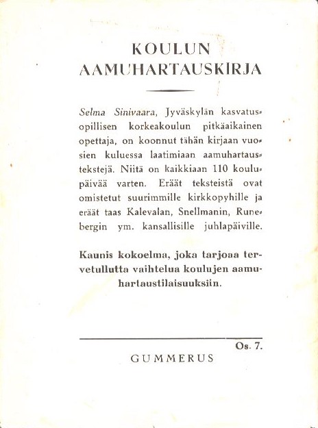 - Julkaistu: Jyväskylä, Gummerus, 1950