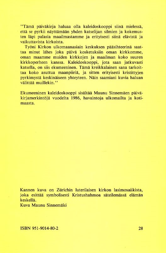 • Nimike: Ekumeeninen kaleidoskooppi: päiväkirjan lehtiä vuodelta 1986