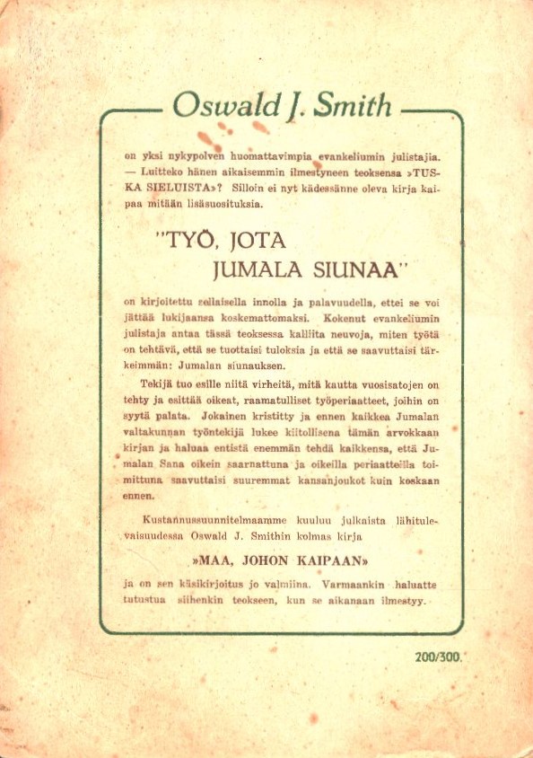 Smith, Oswald J. 1954: Työ jota Jumala siunaa
