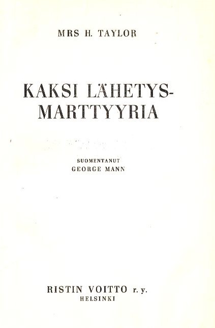 Taylor, H. 1940: Kaksi lähetysmarttyyria (John ja Betty Stam)