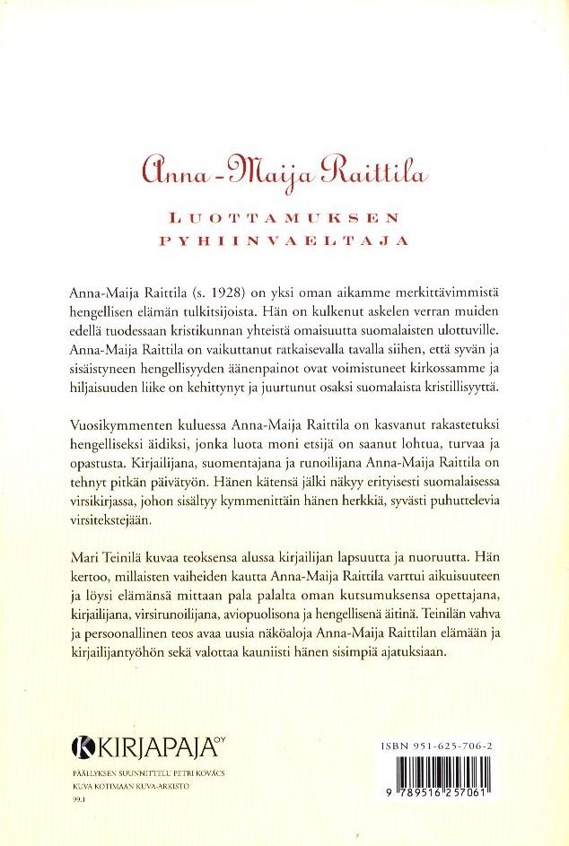 • Nimike: Anna-Maija Raittila: luottamuksen pyhiinvaeltaja