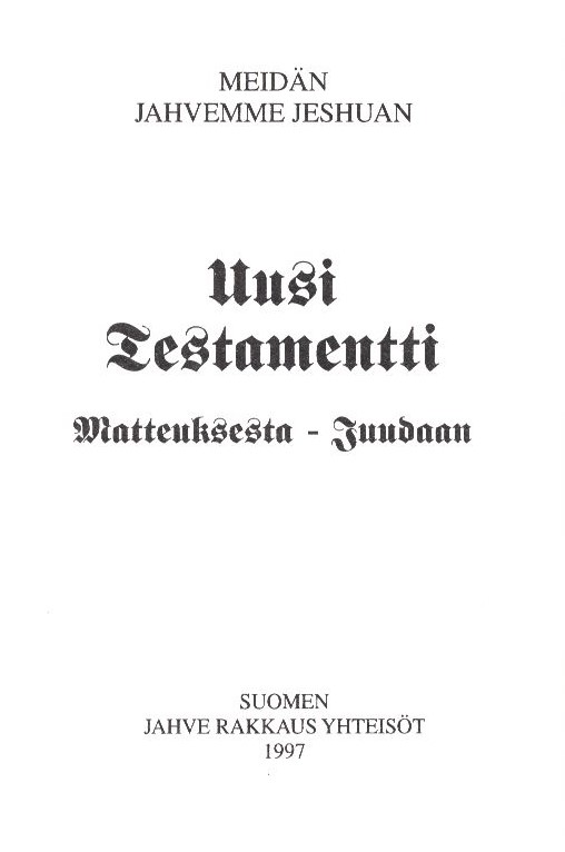 • Julkaistu: Suomen Jahve rakkaus yhteisöt, 1997