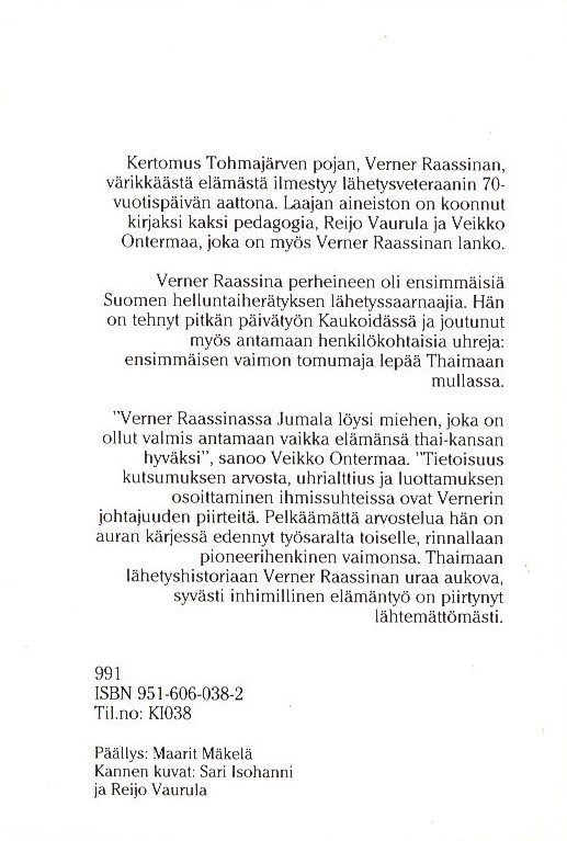 - Nimike: V. O. Raassina – lähetyspioneeri